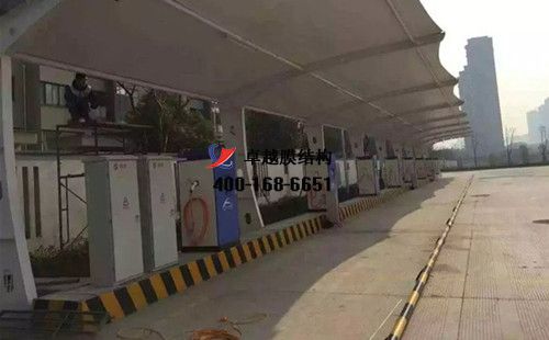 膜結(jié)構(gòu)充電站樁車棚設(shè)計(jì)、施工案例,我們?cè)诙踔莩薪恿硕踔菘瓦\(yùn)站、鄂州市公共交通總公司、鄂州市潤(rùn)升新能源有限公司