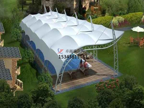 膜結構建筑的篷布材質(zhì)是膜結構,而膜材的更大特點是強度高、耐久性好、防火難燃、自潔性好,不受紫外線影響,使用壽命長,一般15-30年。具有高透光率,透光率為13%,對熱能反射率73%,熱吸收量很少。正是因為這種劃時代的膜材料的發(fā)明,使膜結構建筑成為現(xiàn)代化的永久建筑。