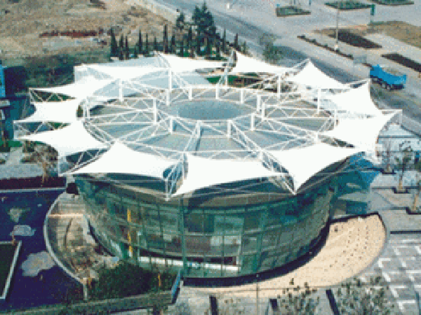 用于膜結(jié)構(gòu)中的高強(qiáng)度柔韌性薄膜稱為膜材,它是膜結(jié)構(gòu)工程中更重要的組成部分,作用與鋼筋、混凝土、輕質(zhì)板材上是等同的,在膜結(jié)構(gòu)建筑中既是起圍護(hù)作用的建筑材料,又是張拉結(jié)構(gòu)體系中的受力材料。