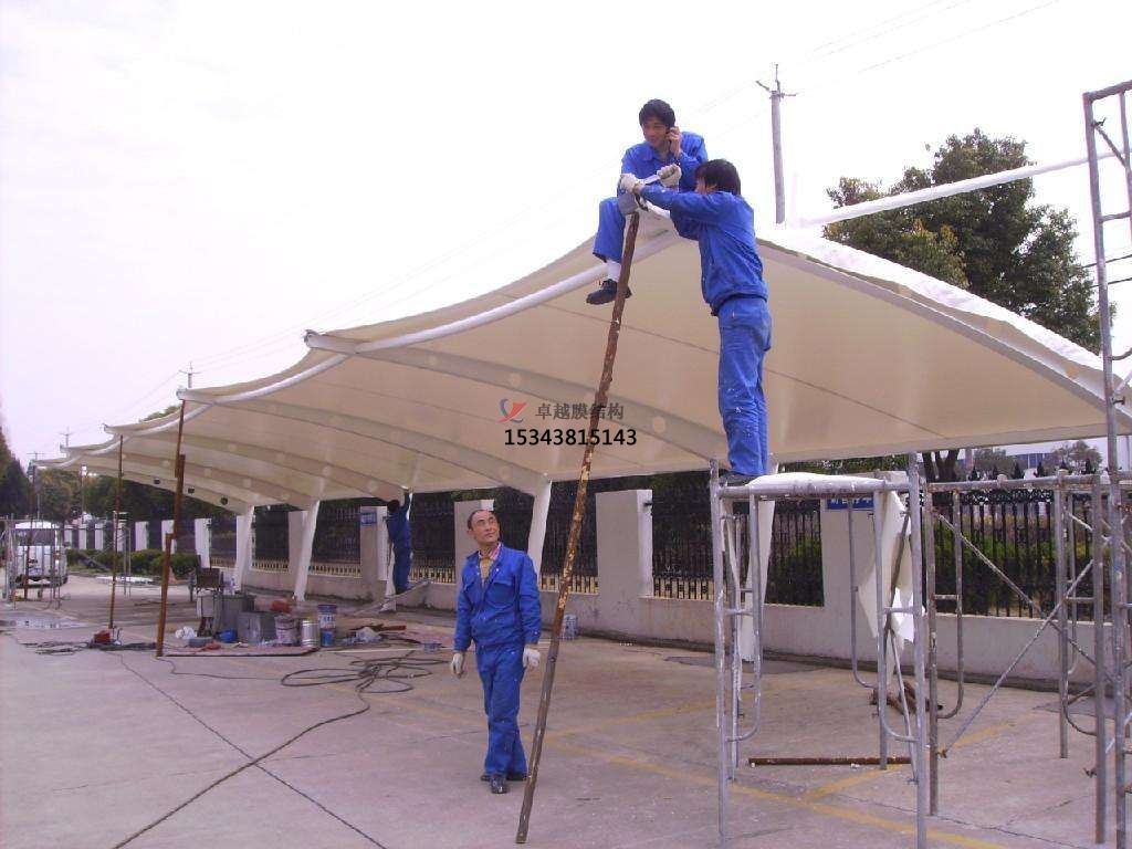 膜結(jié)構(gòu)的停車棚是解決小區(qū)停車難的問題, 膜材料的涂層是采用的是PVc樹脂,由于是隨著使用的期長(zhǎng),PVc樹脂中的塑性劑是會(huì)移到膜材料的表面而黏著空氣及雨水中的臟物使表面的是變臟,而一旦的是被黏著的臟物就很難清洗掉。