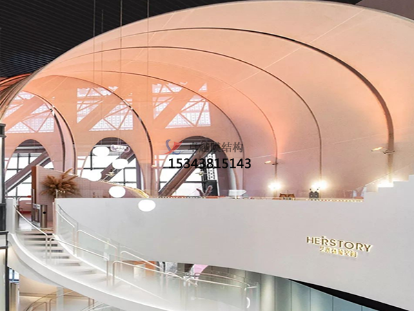 人們發(fā)現(xiàn)算很多的一些商場,包括一些公共區(qū)域,它在進(jìn)行一些休閑空間搭建時,使用的也是張拉膜結(jié)構(gòu)在進(jìn)行修建。主要是因?yàn)樗脑煨头浅5钠?,而且我們在對它進(jìn)行搭建時,也可以感受到它搭建出來之后的整體空間比較大,實(shí)用性很大。而且自己在修建過程當(dāng)中,投入的成本比較低,是比較劃算的一種建筑方法和建筑特點(diǎn).