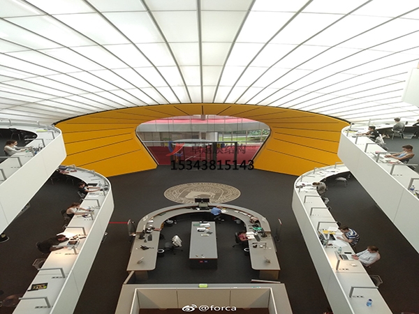 近年來,隨著建筑空間觀念的日益深化以及科學手段的不斷提高,"回歸自然"、"沐浴自然之溫馨"已是現(xiàn)代建筑環(huán)境學發(fā)展的主流。室內(nèi)外的視線越來越模糊,出現(xiàn)了許多亦內(nèi)亦外、相互滲透的不定空間,如:大廳裝飾、天井、四季廳、動植物園、公園廣場、觀景臺、舞臺、體育場館、體育看臺、文化娛樂場所等。由于膜材的光透性,白天陽光可以透過膜材形成慢射光,使膜覆蓋空間內(nèi)達到和室外幾乎一樣的自然效果,因此膜結構能創(chuàng)造出與自然環(huán)境相媲美的空間形式。