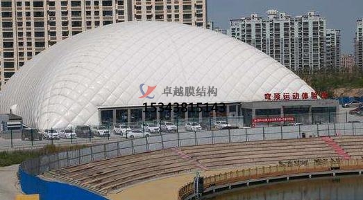 充氣膜體育館是用特殊的建筑膜材做外殼,配備一套智能化的機電設(shè)備在氣膜建筑內(nèi)部提供空氣的正壓,把建筑主體支撐起來的一種建筑結(jié)構(gòu)系統(tǒng)。