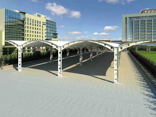2、藝術(shù)性:除了一般雨蓬不可比擬的實(shí)用、耐用、遮風(fēng)擋雨的功能外,膜結(jié)構(gòu)雨蓬更是一座雕塑,一件藝術(shù)品,給人美的視覺(jué)享受。其柔美,其曲線,其剛?cè)岵?jì),其豐富造型,其潔白無(wú)瑕,讓人眼前一亮,回味悠長(zhǎng)。