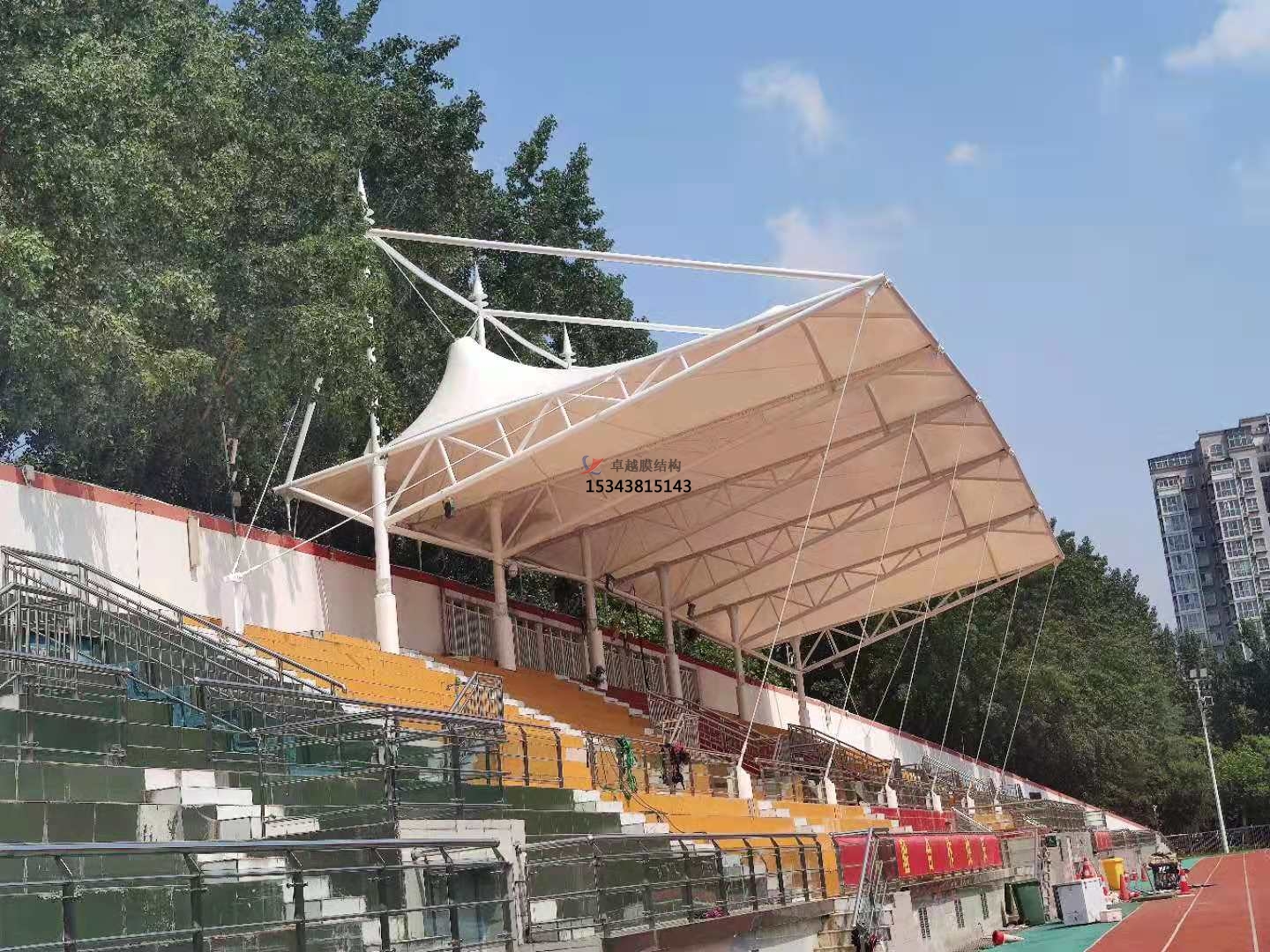 膜結(jié)構體育看臺特點:經(jīng)濟實用美觀,鋼材+鋼索+高強度膜材;大跨度無遮擋視覺空間覆蓋;外觀新穎優(yōu)美而精致,設計無限,時尚環(huán)保理念;遮陽避雨,抗震阻燃,防紫外線;結(jié)構堅固,高強可靠的抗負荷載能力;完美的細部處理,優(yōu)質(zhì)齊全的配件附件;高效的防腐,防塵,自潔功能;服務完善周全,現(xiàn)場施工過程簡便,快捷。