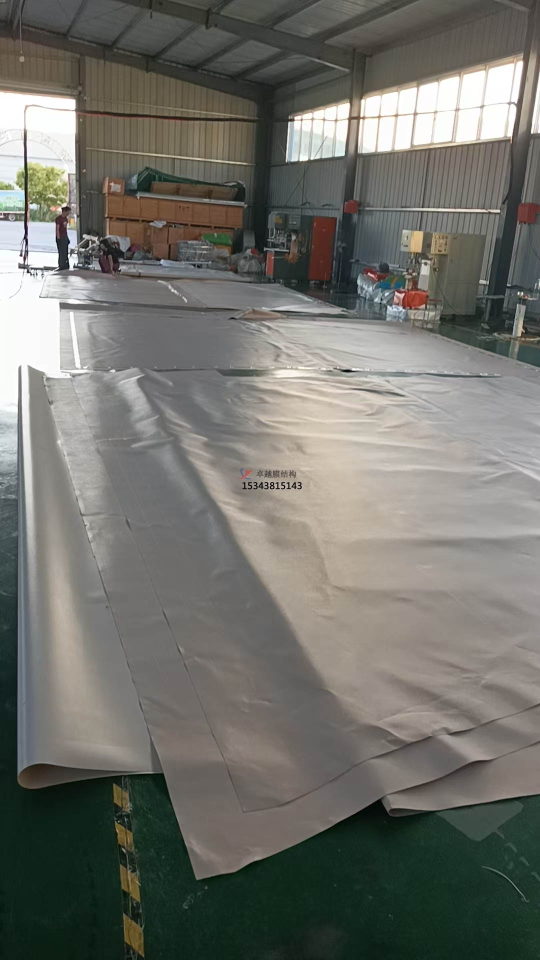 物理性能檢測主要是檢測厚度、重量、抗拉強度及撕裂強度等,檢測結(jié)果應(yīng)不低于膜材性能表所列指標。由于 各國的檢測方法不一致, 檢測結(jié)果也會有出入。 膜材進場時可對各項技術(shù)指標進行抽檢,并檢查膜材出廠時的材料檢測報告和質(zhì)量保證書。當抽檢數(shù)據(jù)與出廠檢測報告出入較大時,應(yīng)通知膜材供應(yīng)商并取樣送權(quán)威檢測機構(gòu)檢測、鑒定。