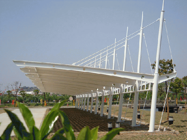 索膜建筑之所以能滿足大跨度自由空間的技術(shù)要求,更關(guān)鍵的一點(diǎn)就是其有效的空間預(yù)張力系統(tǒng)。有人把索膜建筑稱為“預(yù)應(yīng)力軟殼”,是預(yù)應(yīng)力使“軟殼 ” 各個(gè)部分在個(gè)中更不利荷載下的內(nèi)力始終大于零(永遠(yuǎn)處于張拉拉伸狀態(tài)),從而使”軟殼“成為空間整體工作的結(jié)構(gòu)媒體和建筑圍合材料,使得索膜建筑富有迷人的張力曲線和變幻莫測(cè)的空間,使體系得以覆蓋大面積,大跨度無柱自由空間,并且可以抵抗狂風(fēng),大雪等不利荷載狀況。