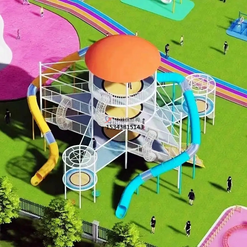 應(yīng)用廣泛:膜結(jié)構(gòu)在游樂(lè)設(shè)施中應(yīng)用廣泛,如滑梯、攀巖、蹦床、旋轉(zhuǎn)木馬等設(shè)施中都可以采用膜結(jié)構(gòu)。