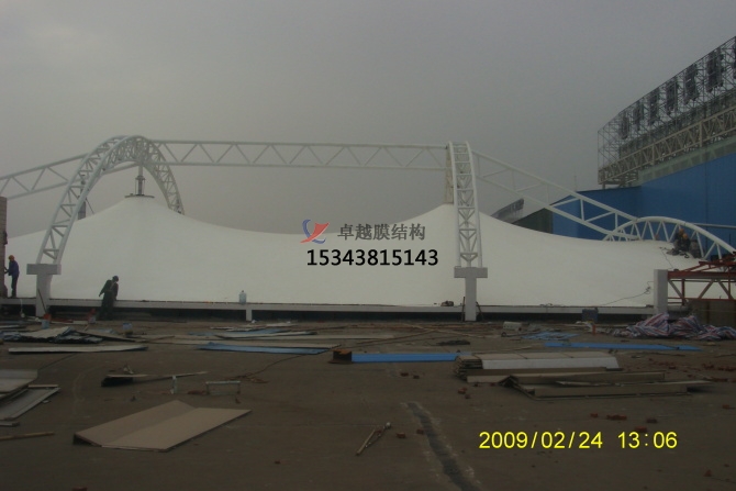 更后:商業(yè)街膜結構穹頂?shù)闹饕獦嫵捎心げ迹摻Y構(Q235、無縫焊管、高頻焊管、H型鋼等),更主要的特性重量輕、強度高、防火難燃、自潔性好,不受紫外線影響、抗疲勞、耐扭曲、耐老化、使用壽命長。具有高透光率,熱吸收量很少。正是因為這種跨時代的膜材料的發(fā)明,使膜結構建筑成為現(xiàn)代化的永久性建筑。