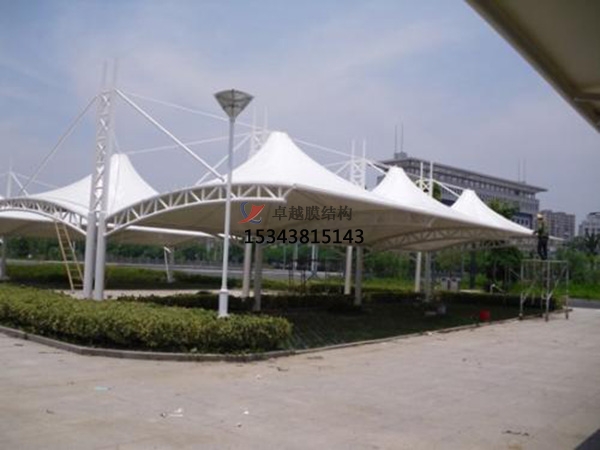 在生活中,我們幾乎隨處可以見到張拉膜結(jié)構(gòu)。比如張拉膜結(jié)構(gòu)車站的候停車棚、張拉膜結(jié)構(gòu)收費(fèi)站、張拉膜結(jié)構(gòu)公交車站臺等園林景觀建筑、交通建筑、體育設(shè)施等的使用是較為的常見。