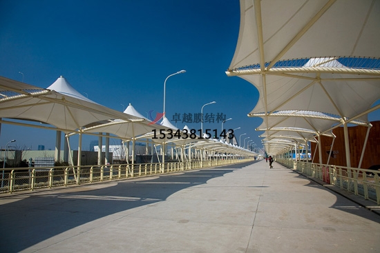 四、膜結(jié)構(gòu)裝置過程中不該發(fā)生雨水積存現(xiàn)象。一起應依據(jù)降雨的程度決議工程的間斷和繼續(xù)。