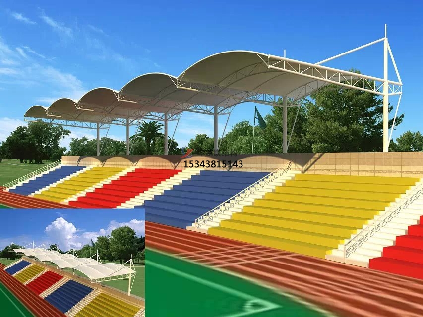 張拉膜看臺主要用于各類地方體育場主席臺雨棚,各類學校體育場看臺雨棚遮蓋,我公司是國內較早從事大懸挑張拉膜結構看臺設計施工的專業(yè)廠家,下面介紹一下我們在太白縣周邊縣市完工的一些張拉膜看臺設計施工案例,我公司先后在太白縣周邊承接了太白縣太白中學膜結構看臺雨篷/主席臺/舞臺安裝雨棚、太白縣高級中學張拉膜張拉膜看臺罩棚、太白縣咀頭小學張拉膜看臺遮陽棚等設計施工項目,簡介如下: