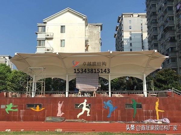 膜結(jié)構(gòu)看臺由多種高強薄膜材料及加強構(gòu)件通過一定方式使其內(nèi)部產(chǎn)生一定的預(yù)張應(yīng)力以形成某種空間形狀,作為覆蓋結(jié)構(gòu),并能承受一定的外荷載作用的一種空間結(jié)構(gòu)形式,以下是鄭州卓越膜結(jié)構(gòu)公司詳細(xì)概述膜結(jié)構(gòu)工程幾個施工特點: