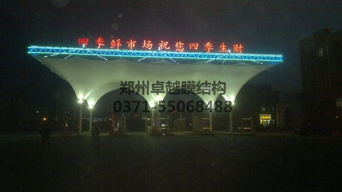 寧夏銀川四季海鮮市場大門膜結(jié)構(gòu)雨棚