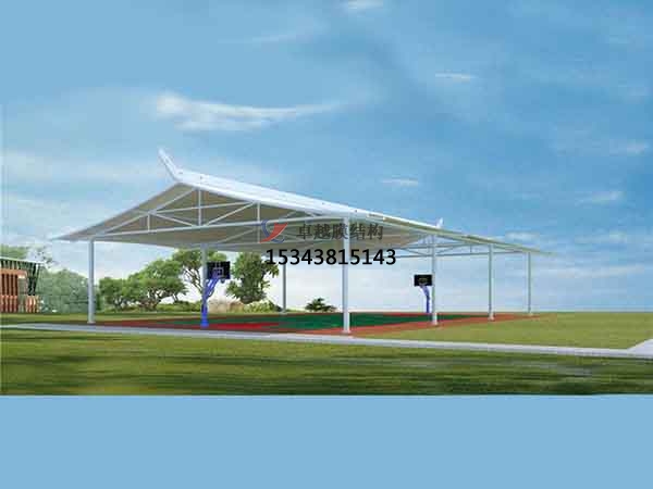籃球場(chǎng)膜結(jié)構(gòu)罩棚是指安裝在籃球場(chǎng)上方的膜結(jié)構(gòu),起到遮陽(yáng)擋雨的作用。對(duì)于場(chǎng)地要求低,基本上所有籃球場(chǎng)地都可以做膜結(jié)構(gòu)頂棚,相比混凝土結(jié)構(gòu)的風(fēng)雨球館,施工周期更短,造價(jià)更低。膜的透光性比較好,所以可以保證場(chǎng)館內(nèi)的采光。先設(shè)計(jì),然后進(jìn)行材料加工,現(xiàn)場(chǎng)安裝,施工效率更高。下面介紹一下我們?cè)诶_市周邊縣市完工的一些籃球場(chǎng)膜結(jié)構(gòu)罩棚設(shè)計(jì)施工案例。
