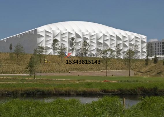 場(chǎng)館高30m,面積兩萬(wàn)平方米,外敷可收回PVC膜,膜在后面的結(jié)構(gòu)的效果下構(gòu)成美麗的崎嶇。透光的外表皮能夠使得場(chǎng)館在白天能夠十分少的依賴(lài)人工照明。
