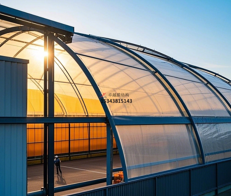 在后期維護上,膜結構罩棚同樣節(jié)省費用。膜材具有自潔性,表面不易附著灰塵與污漬,雨水沖刷即可保持清潔。并且,膜材耐候性強,耐腐蝕、抗老化,使用壽命可達 15 - 25 年。日常維護只需定期檢查膜材與支撐結構狀況,維護成本大幅降低。據(jù)統(tǒng)計,使用膜結構罩棚的垃圾中轉站,每年維護費用可比傳統(tǒng)建筑形式的中轉站節(jié)省 30% - 50% 。