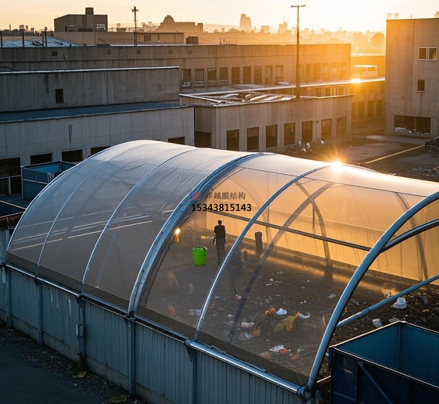 在城市生活垃圾中轉站中,膜結構罩棚應用普遍。如北京某區(qū)的多個生活垃圾中轉站,采用充氣式膜結構罩棚,不僅解決了垃圾異味擾民問題,還提升了垃圾轉運效率,周邊居民對環(huán)境滿意度顯著提高。