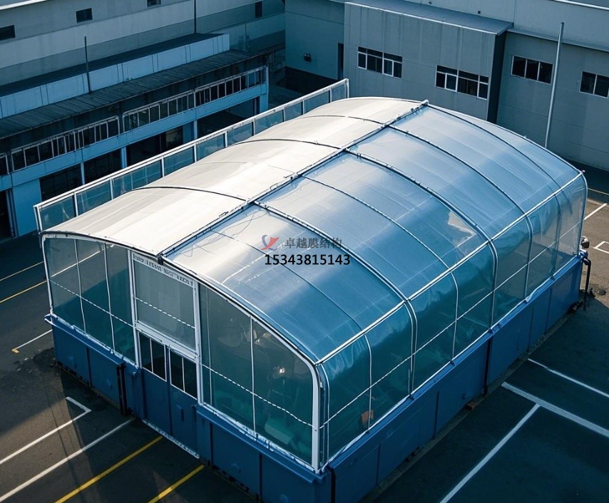 膜結構罩棚主要依靠膜材自身強度及預應力來承受外部荷載,形成穩(wěn)定的空間結構。在垃圾中轉站應用中,常見的有骨架式膜結構和充氣式膜結構。