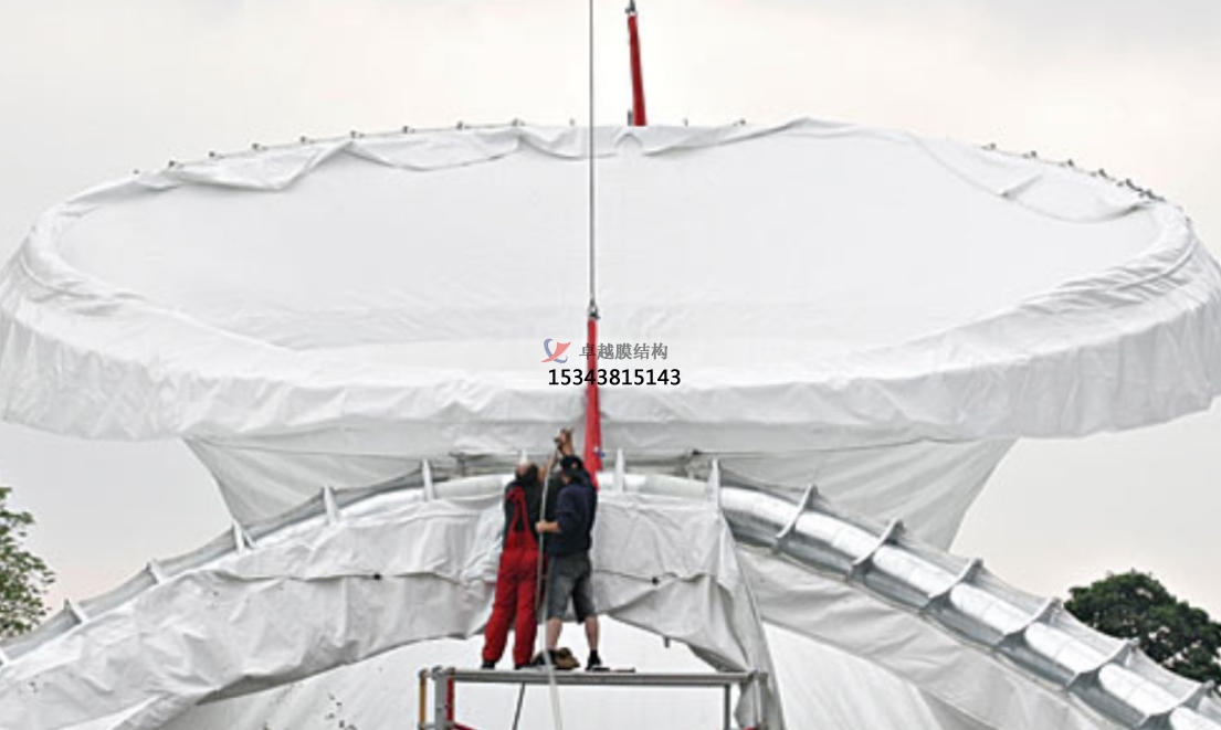 膜結(jié)構舞臺的特點是面積大、工程量大,但是技術上已經(jīng)很成熟,工程質(zhì)量在于細節(jié)的把控。