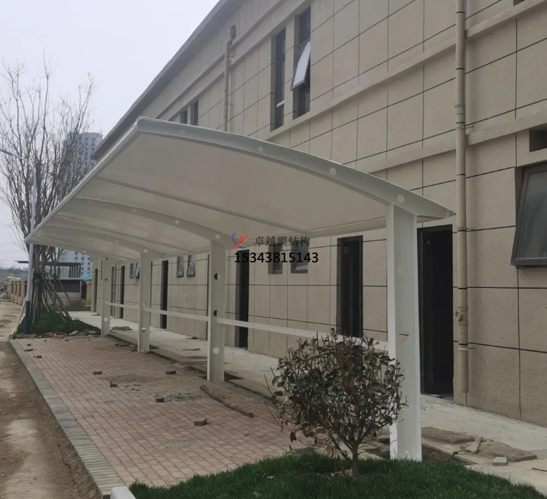除了停車功能外,7字型膜結(jié)構(gòu)車棚的一側(cè)可以與建筑物相連,形成一個(gè)過渡空間。這個(gè)過渡空間可以有多種用途,比如作為行人的遮雨棚、自行車停放處,或者設(shè)置為休息區(qū)。這種多功能的設(shè)計(jì),為人們的生活和使用帶來了更多的便利,提升了整個(gè)區(qū)域的實(shí)用性。