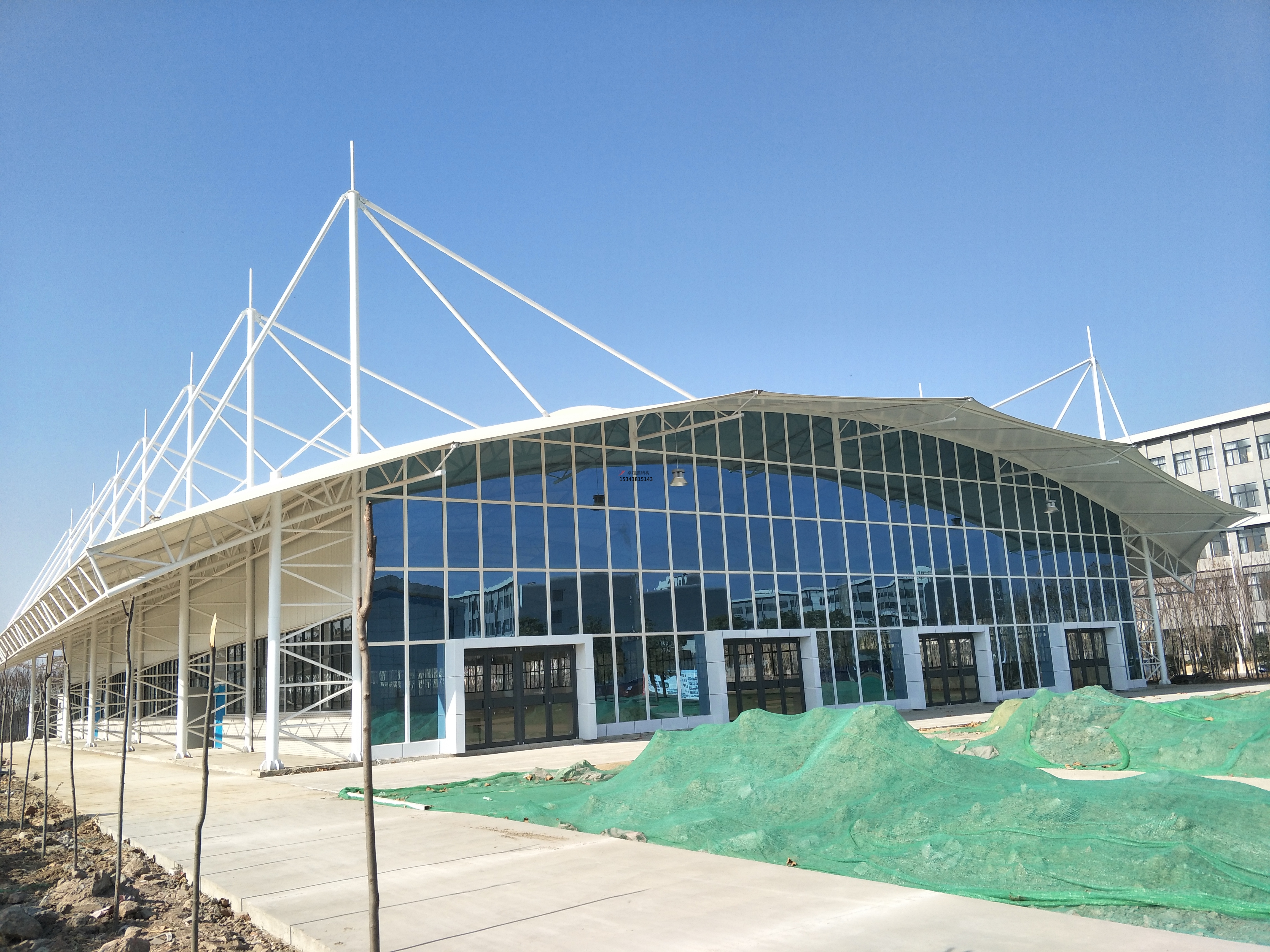 膜結(jié)構(gòu)籃球場雨棚優(yōu)勢:其優(yōu)勢可分為性能優(yōu)勢、功能優(yōu)勢、施工與經(jīng)濟(jì)優(yōu)勢、美觀優(yōu)勢四大類。性能優(yōu)勢表現(xiàn)在其輕質(zhì)高強(qiáng),膜結(jié)構(gòu)雨棚采用的膜材料重量輕,但強(qiáng)度高,如高強(qiáng)度聚酯纖維織物與 PVC 涂層的組合,在保證雨棚安全性的同時,還能實現(xiàn)大跨度、無柱設(shè)計,為籃球場提供寬敞、無遮擋的運動空間。抗候性強(qiáng),高性能的 PVC 或 PTFE 等膜材料,具有極強(qiáng)的抗紫外線、耐腐蝕、抗老化等特性,能在惡劣天氣條件下保持良好性能,延長雨棚使用壽命。自潔性好,許多膜材表面有防污涂層,在自然風(fēng)力和雨水沖刷下可保持自潔,減少清洗和維護(hù)頻率,同時保證膜材的美觀和透光性;功能優(yōu)勢表現(xiàn)在其遮陽擋雨,能有效遮擋陽光和雨水,為球員和觀眾提供舒適的環(huán)境,使籃球場在各種天氣條件下都能正常使用,提高場地利用率。通風(fēng)透光,具有良好的透光性和透氣性,可自然采光,減少電能消耗,同時保證場館內(nèi)空氣流通,為運動員和觀眾創(chuàng)造舒適的環(huán)境;施工與經(jīng)濟(jì)優(yōu)勢表現(xiàn)在施工簡便,膜結(jié)構(gòu)雨棚的施工周期短,膜材在加工廠統(tǒng)一加工后運輸?shù)浆F(xiàn)場安裝,且主體鋼結(jié)構(gòu)基本材料也可在工廠完工,直接拉到現(xiàn)場安裝,節(jié)省現(xiàn)場施工時間。成本較低,相比傳統(tǒng)的混凝土結(jié)構(gòu)風(fēng)雨球館,膜結(jié)構(gòu)雨棚的造價更低,且維護(hù)成本也低,長期來看具有較高的性價比;美觀優(yōu)勢表現(xiàn)在其造型多樣,膜結(jié)構(gòu)雨棚采用獨特的曲面設(shè)計,線條流暢,可以根據(jù)客戶需求定制不同的顏色、圖案和形狀,如弧形、穹頂形、錐形等,使籃球場更具個性,提升球場檔次。融合性好,能夠與周圍環(huán)境和諧融合,無論是在學(xué)校、公園、小區(qū)還是商業(yè)場所,都能成為建筑的一個亮點。
